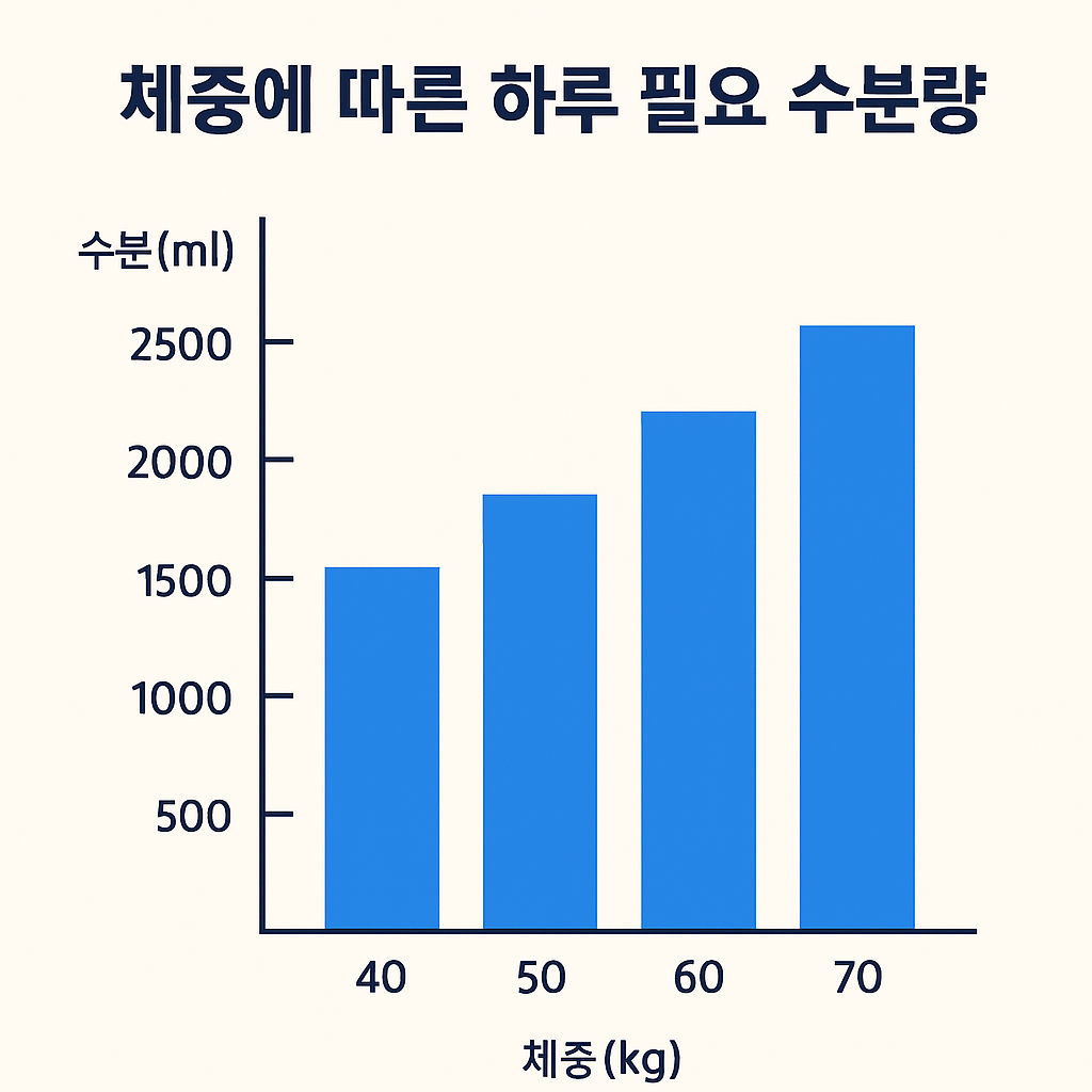 하루 필요 수분량(ml) = 체중(kg) × 30~35ml